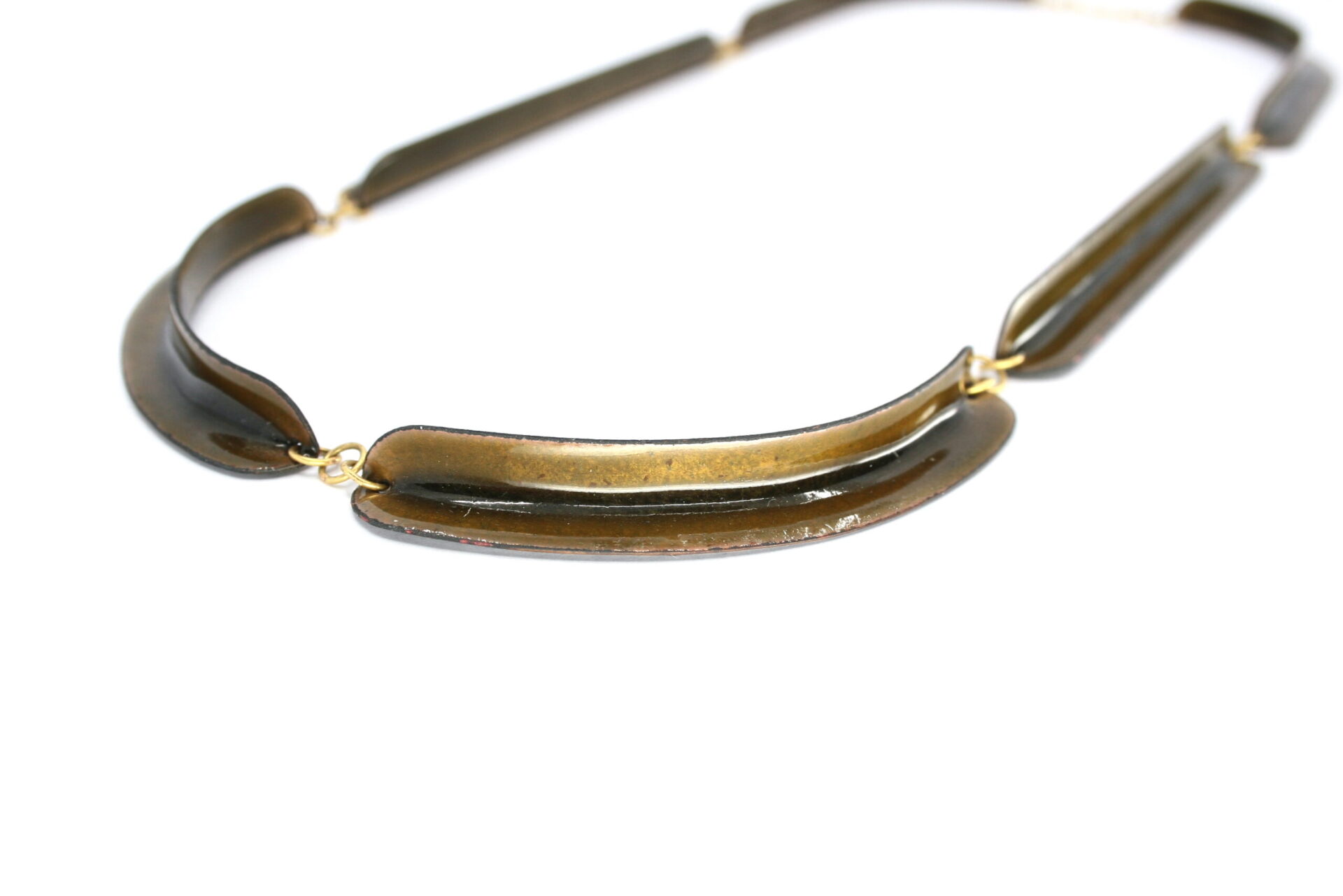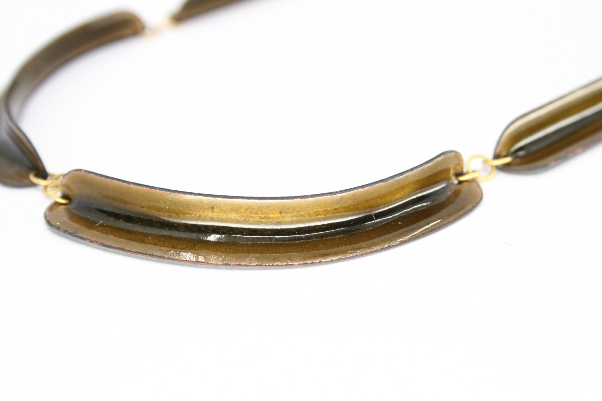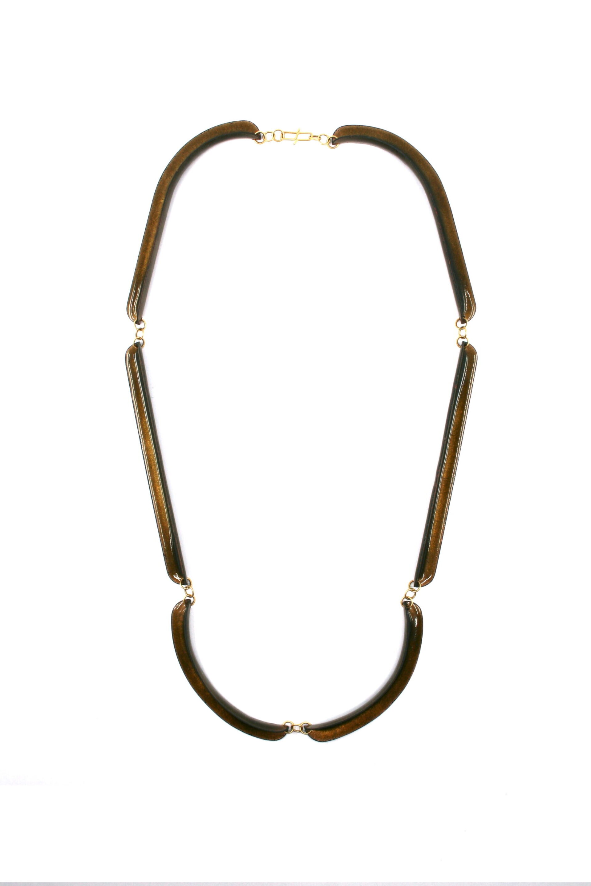Harmonie et rigueur mènent cet artiste sur les voies de ses créations personnelles. La clarté de son langages formel lui permet d’aborder la parure sous l’angle d’une géométrie dans laquelle la lumière occupe une place de choix, celle de l’ivresse des profondeurs de ce quatrième état de la matière à laquelle le poète nous confronte. Maniant les courbes et les angles de pliage, elle crée des raccourcis dans lesquels notre vision percute d’autres modules, dédoublant le corps de cette matière passée au feu. Les vitrifications successives modifiant la surface, l’artiste influe sur notre perception, ouvrant par le jeu des transparences un monde de couleurs aux horizons reliant passé et futur.